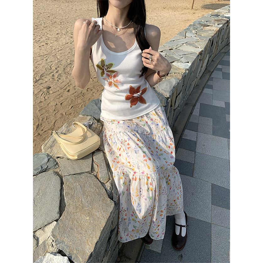 軽やかな素材感と華やかな小花柄が魅力のティアードロングスカート。
