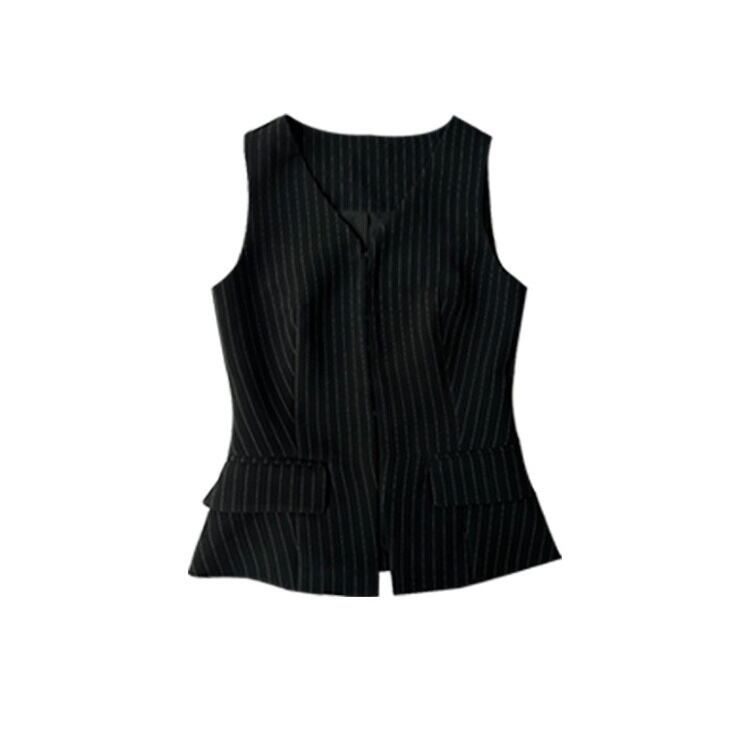 ピンストライプ ベスト Vネック フラップポケット ウエストシェイプ スリム レイヤード セットアップ オフィス カジュアル モード CIZZLEMORE レディース トップス 黒 B-1308 【お取寄せ】