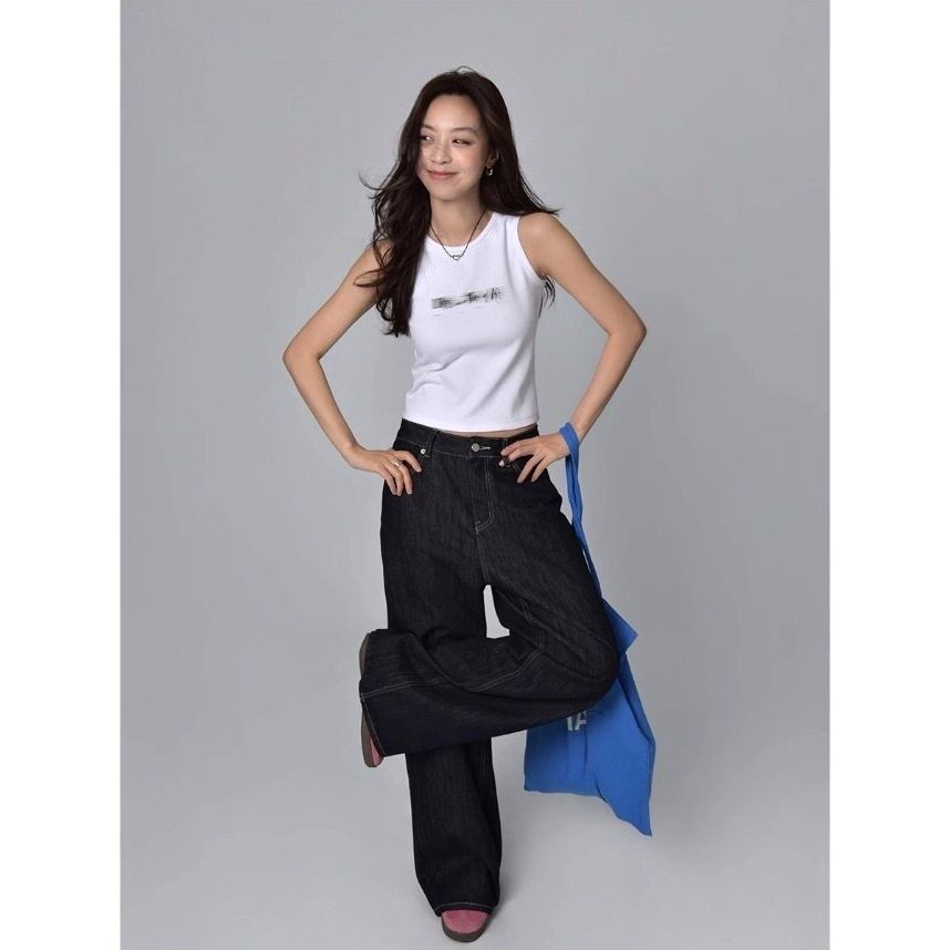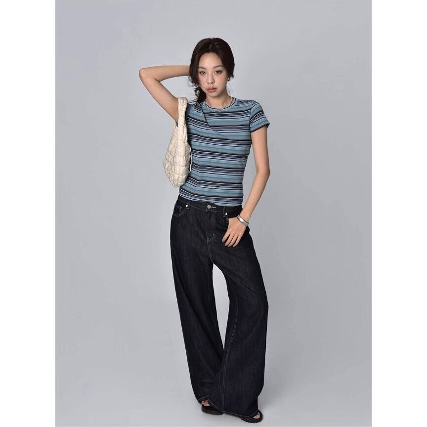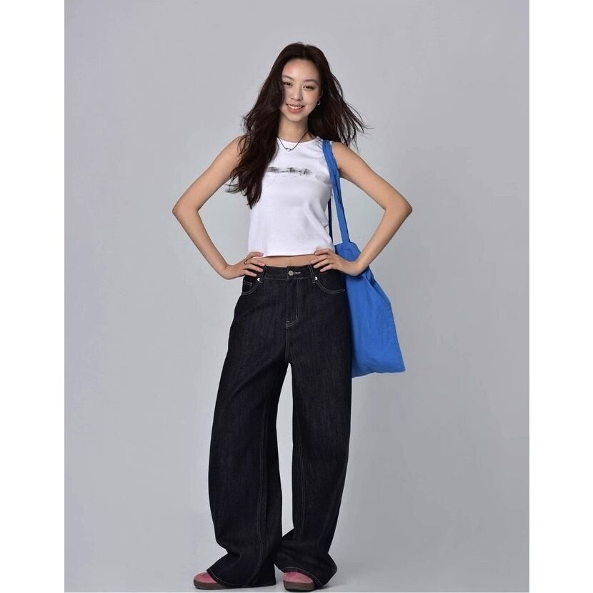デニムパンツ ワイドレッグ ストレート ジーンズ ジーパン シンプル カジュアル きれいめ メンズライク ストリート SIXI レディース ボトムス 紺 インディゴ B-1318 【お取寄せ】