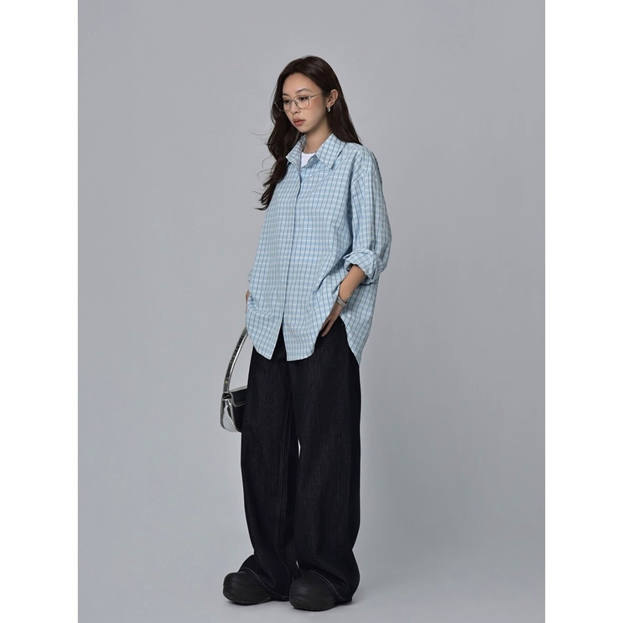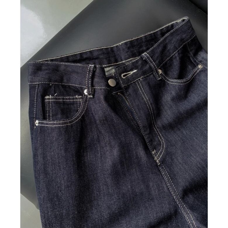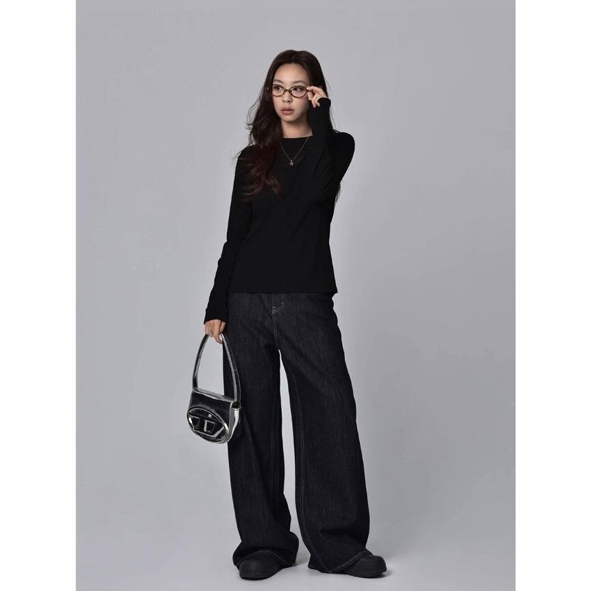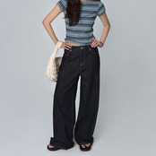 深みのあるカラーが上品な印象を与えるワイドデニムパンツ。