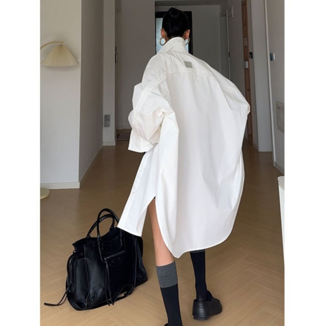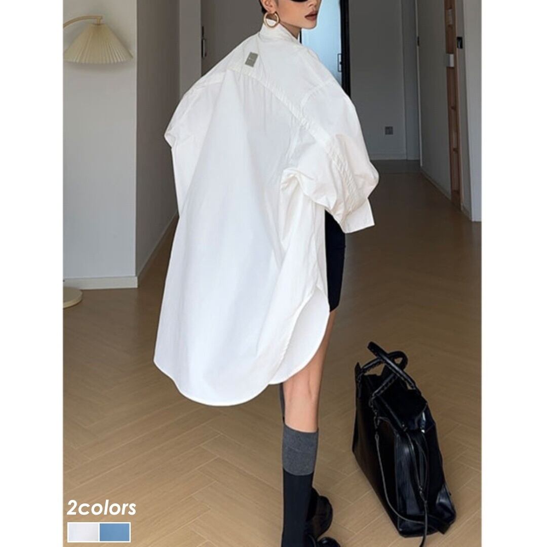 オーバーサイズ シャツ 長袖 ロング丈 コットン 綿 シンプル 無地 ブラウス 羽織り シャツワンピ ゆったり カジュアル きれいめ CIZZLEMORE レディース トップス 青 白 B-1321 【お取寄せ】