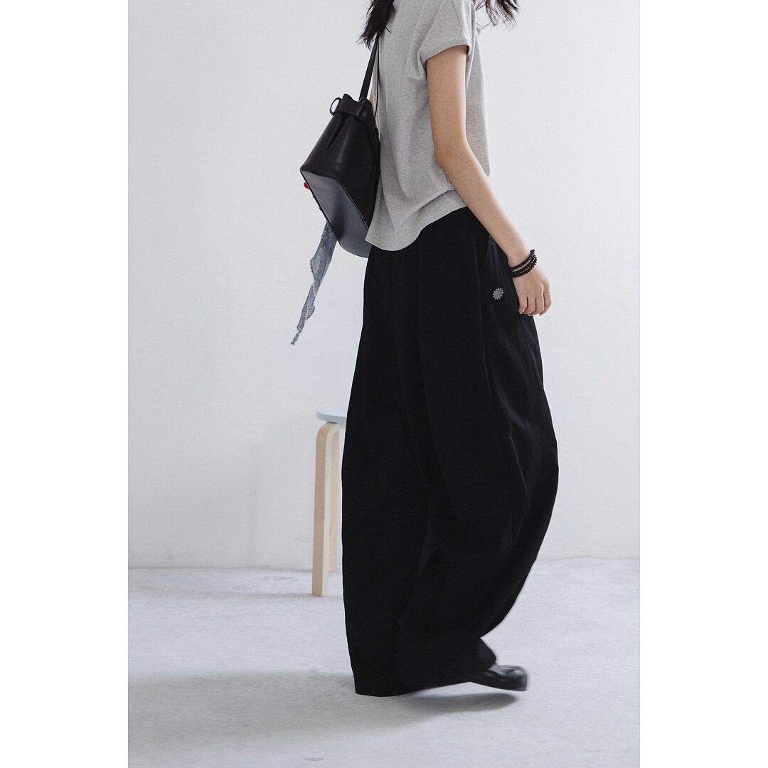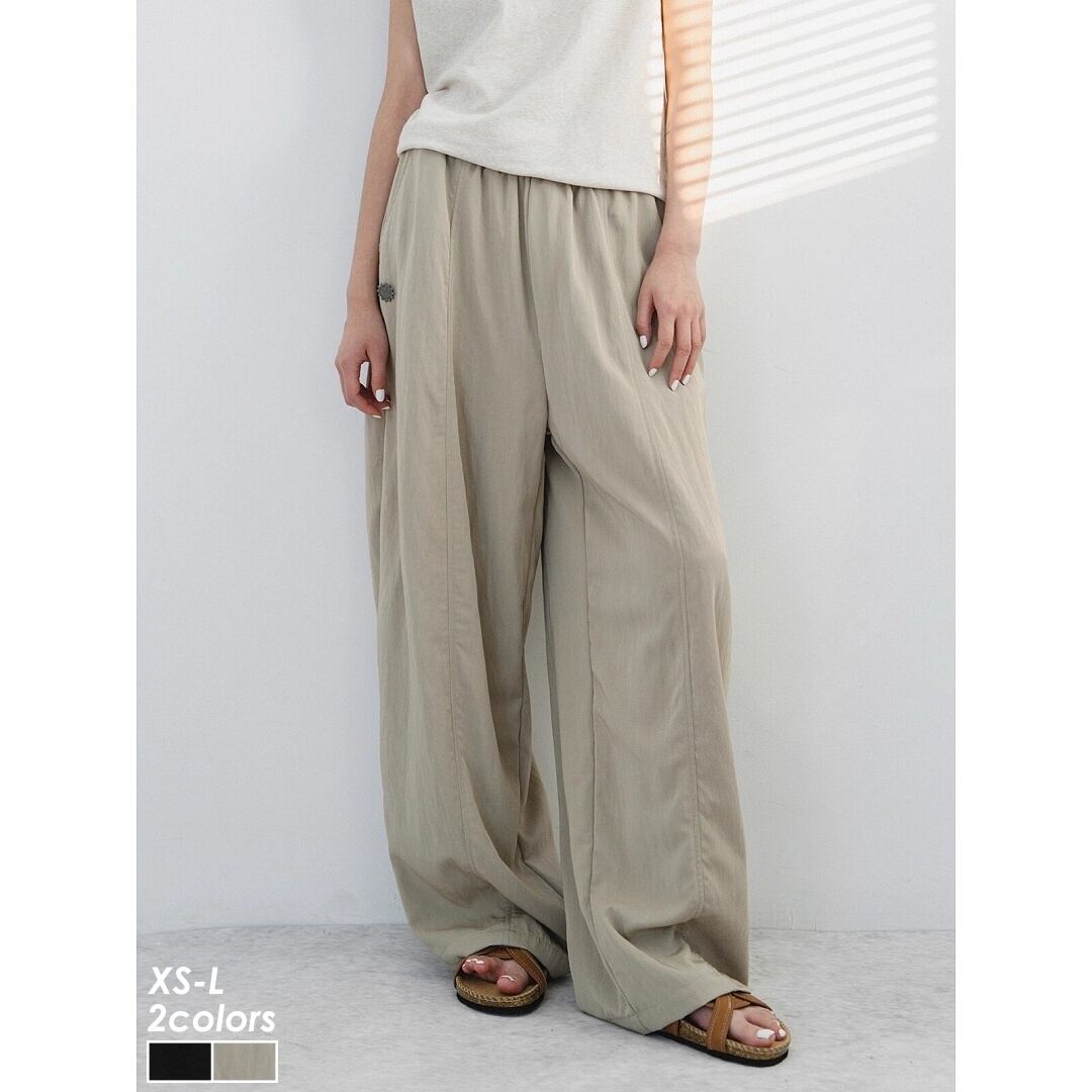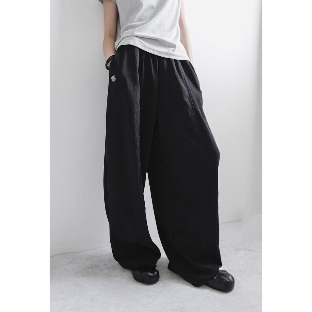 ワイドパンツ ワイドレッグ リラックスパンツ ウエストゴム ドローストリング ドレープ ルーズ ゆったり 楽ちん カジュアル メンズライク ストリート PAOCAILADY レディース ボトムス 黒 ベージュ B-1329 【お取寄せ】
