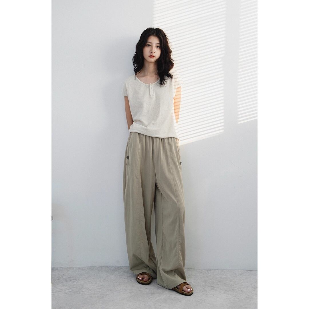 軽やかな素材感で、Tシャツやシャツ、ニットなど幅広いトップスと相性抜群。