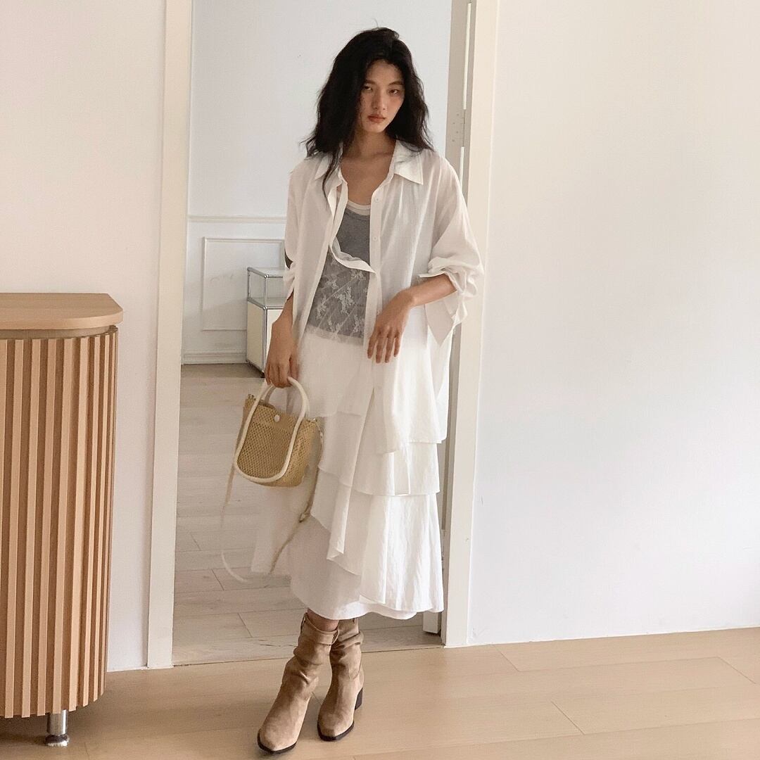 ゆったりとしたシルエットとドロップショルダーでリラックス感があり、Tシャツやタンクトップに羽織るだけで大人のカジュアルスタイルに。