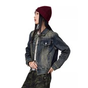 デニム ジャケット ブルゾン Gジャン ジージャン 長袖 ウォッシュ 色落ち加工 ヴィンテージ風 ショート丈 大きいサイズ カジュアル ICH MODE レディース アウター 紺 青 B-1348 【お取寄せ】