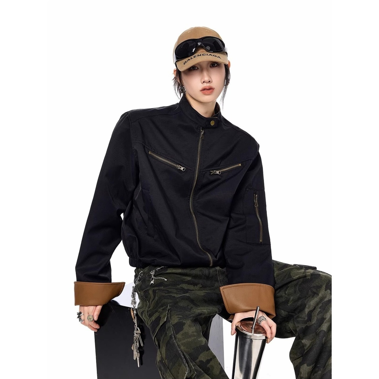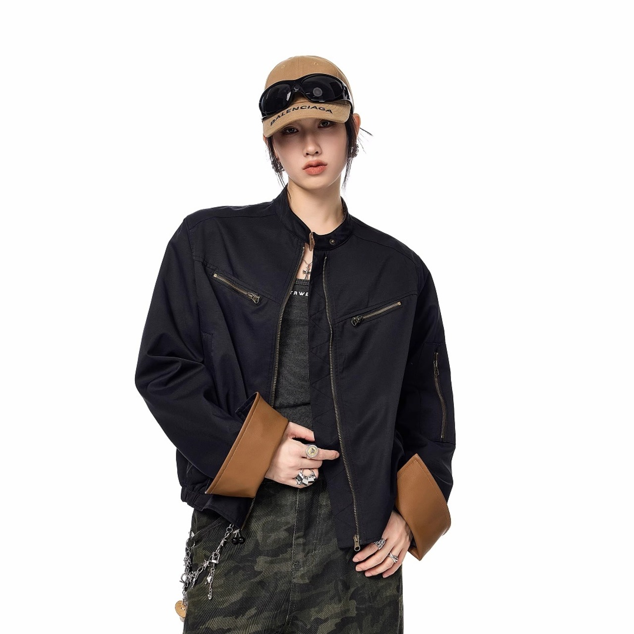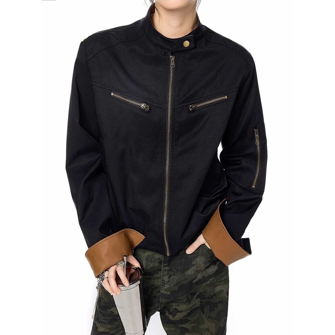 胸元や袖のジップがアクセントになり、スタイリッシュな着こなしを楽しめます。