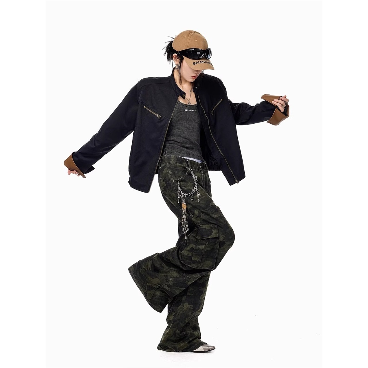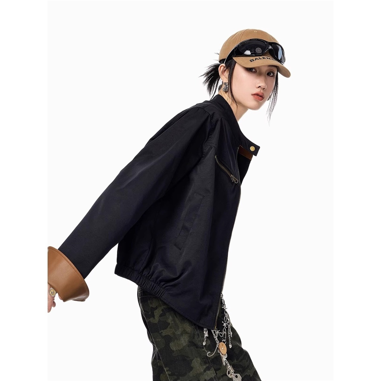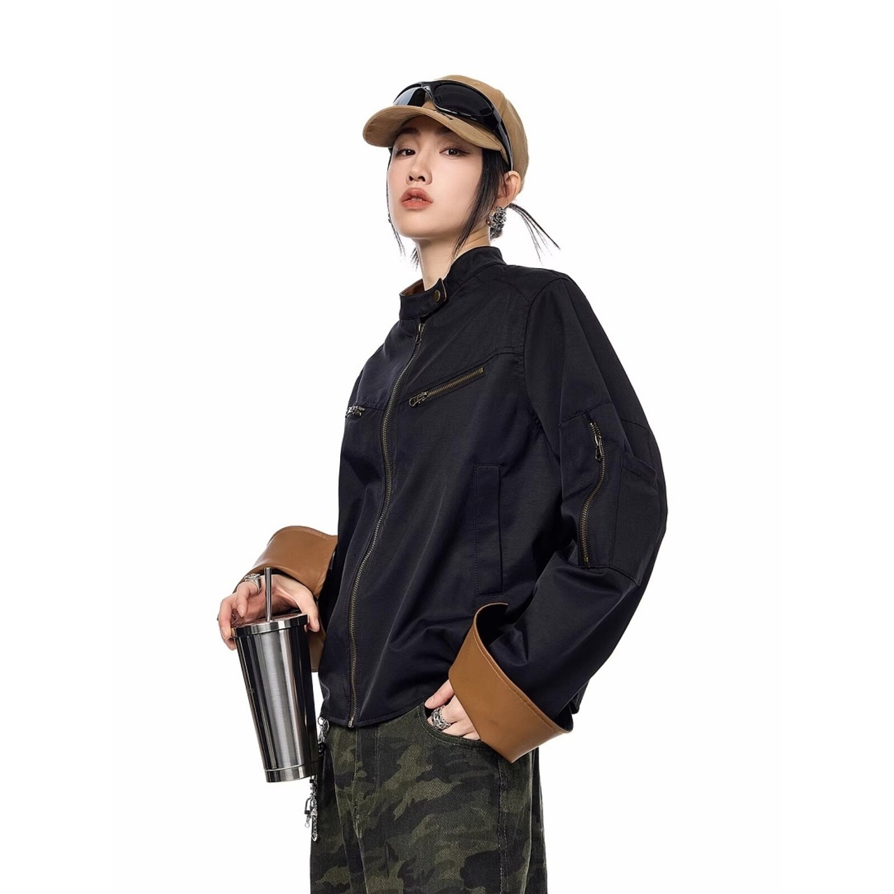 胸元や袖のジップがアクセントになり、スタイリッシュな着こなしを楽しめます。