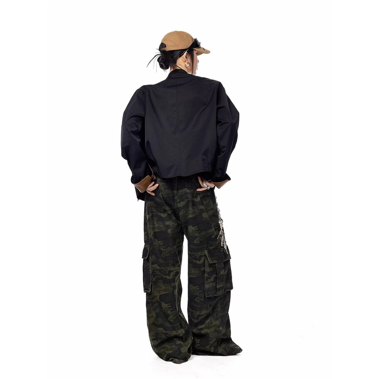 袖口の折り返しデザインが印象的なジップアップジャケット。