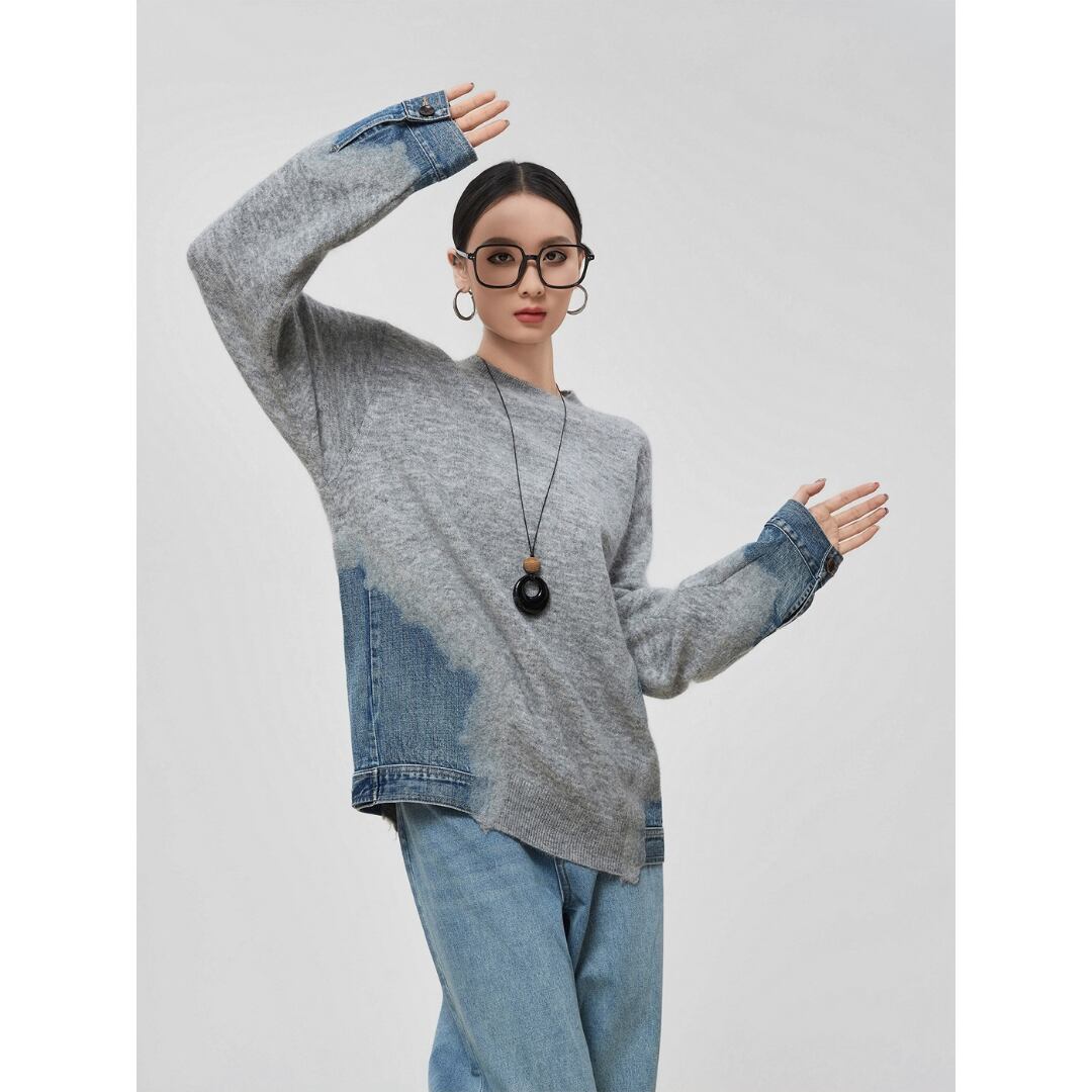 ふんわりとした軽い着心地のニットに、袖口と裾のデニム切り替えがアクセントとなり、印象に残るスタイルに仕上がります。