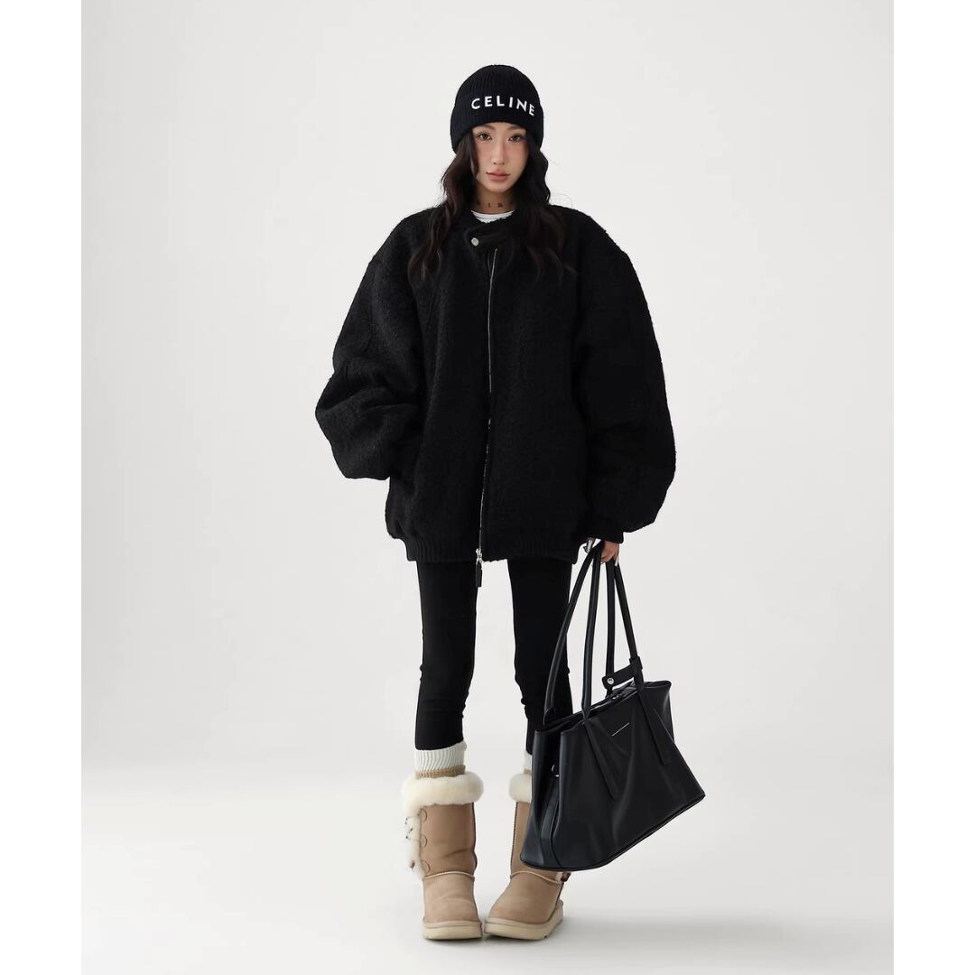 立体感のあるボア素材に中綿を入れた、暖かさと存在感を兼ね備えたアウター。