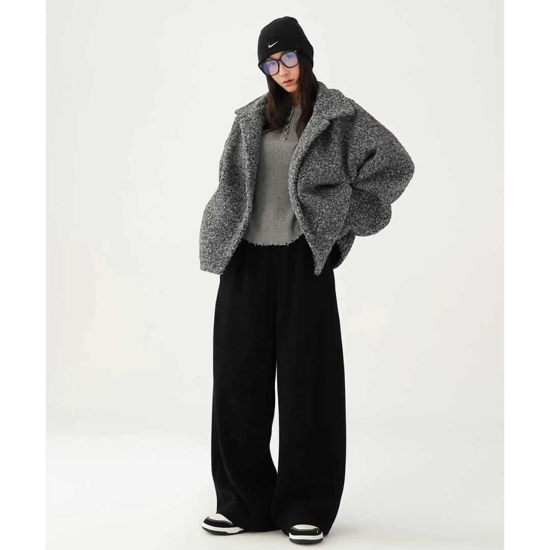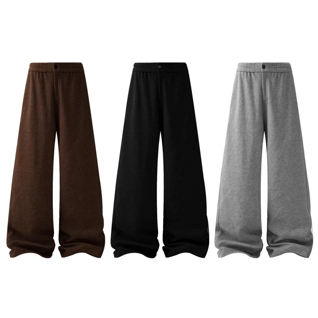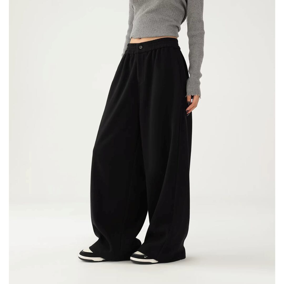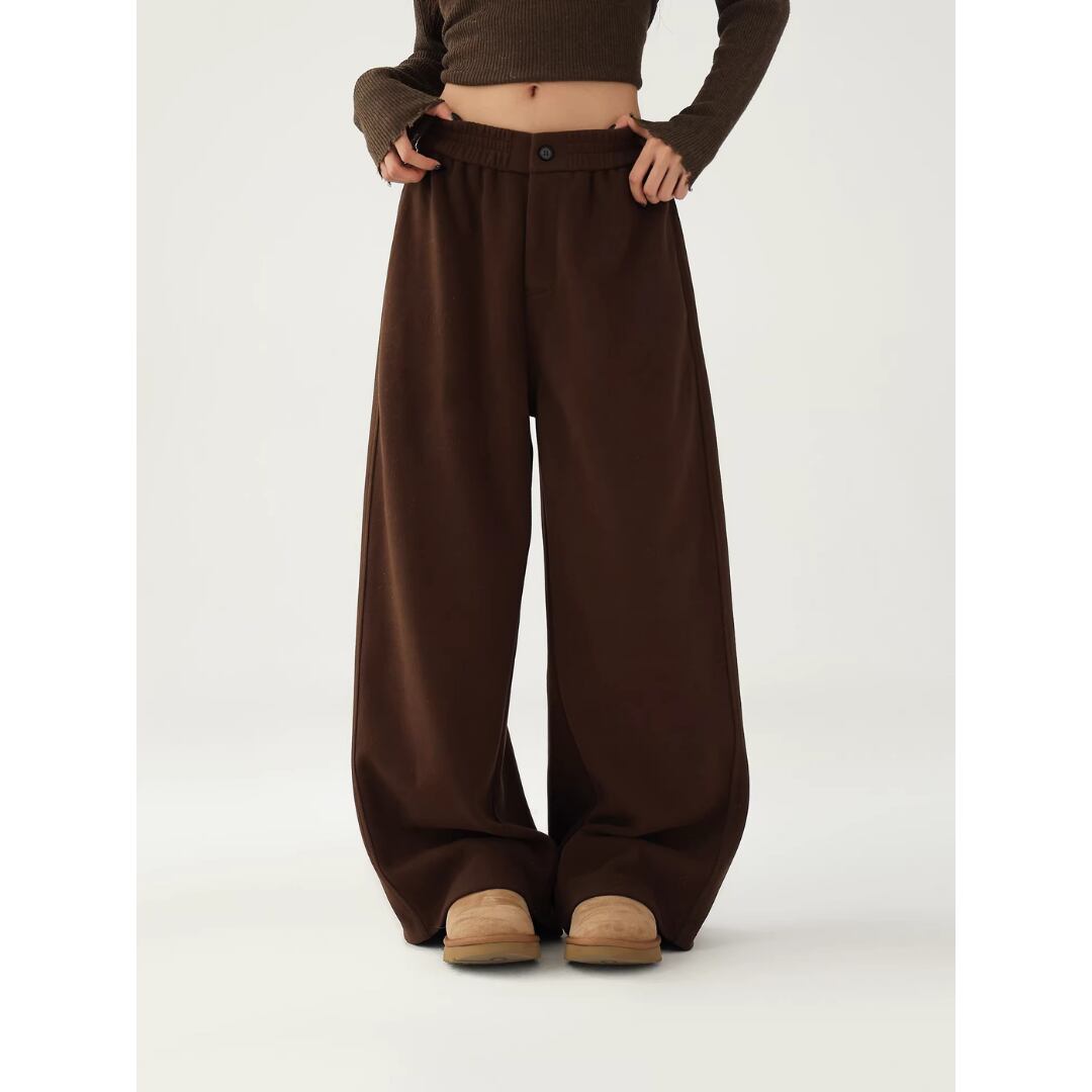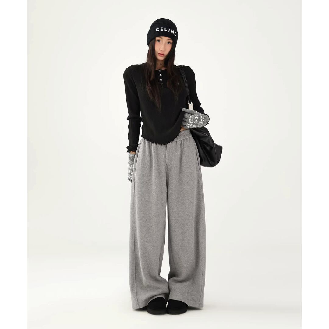 スウェットパンツ ウエストゴム 前開きファスナー ハイウエスト 厚手 ワイドパンツ ロングパンツ カジュアル Acestudios レディース ボトムス 黒 茶 B-1418 【お取寄せ】
