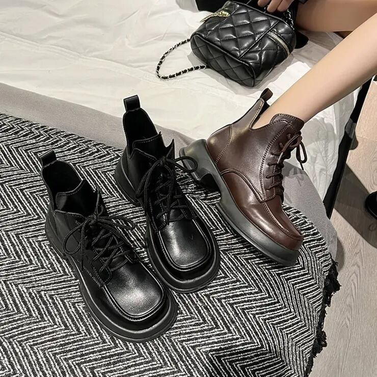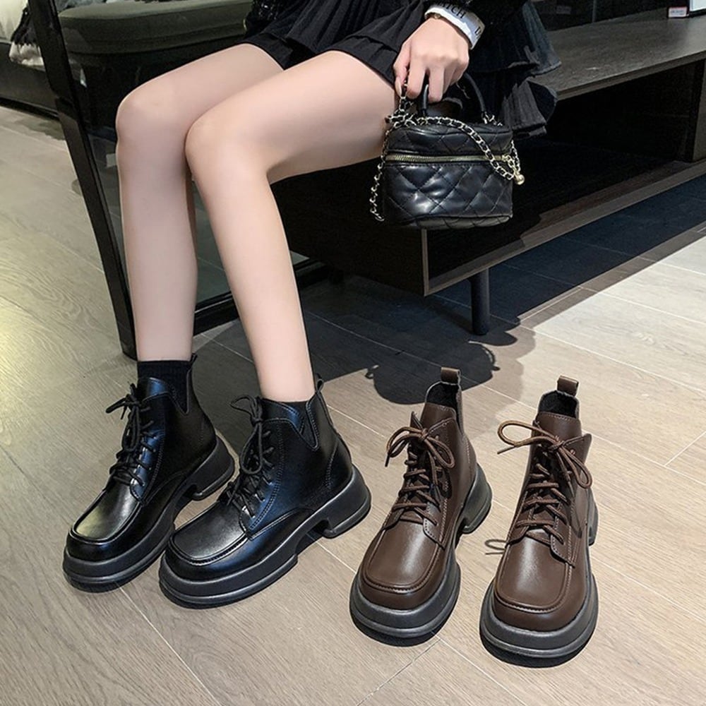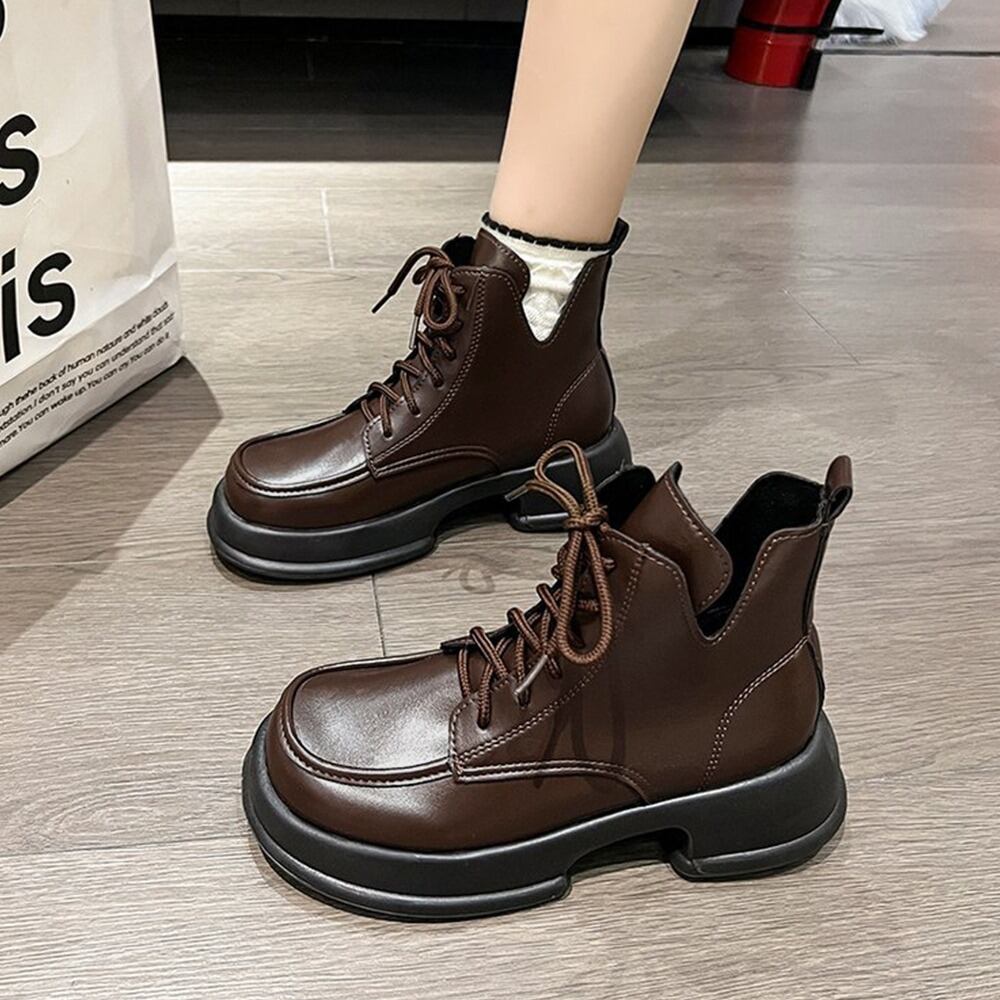 【送料無料・即納】 厚底 ワークブーツ ショートブーツ レースアップ 編み上げ ミドルブーツ カジュアル レディース 靴 シューズ 22.5-24.5cm 黒 茶 NS-2511