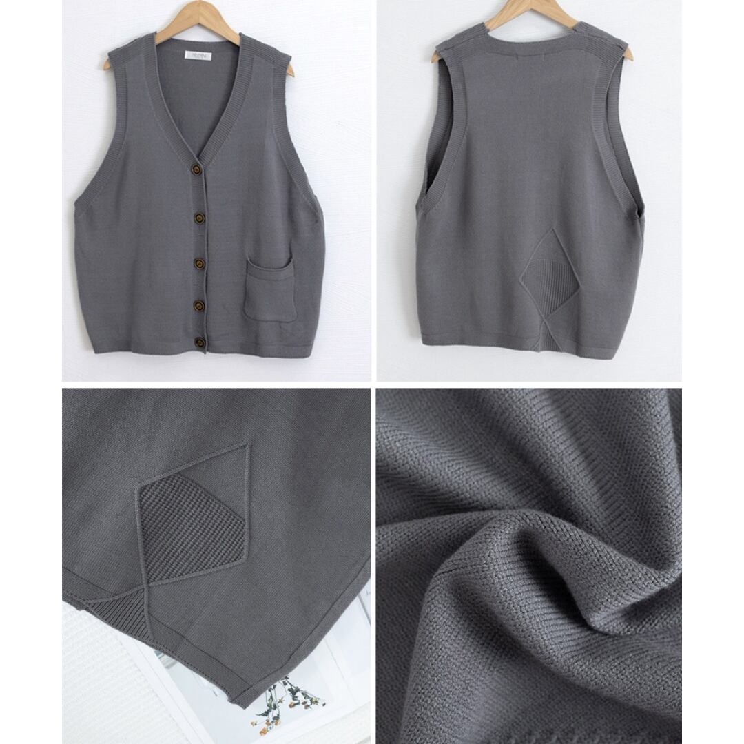シンプルで着回しやすいVネックデザインのニットベスト。