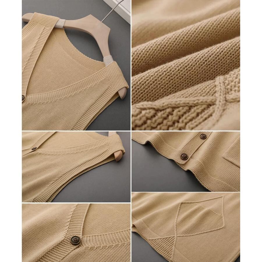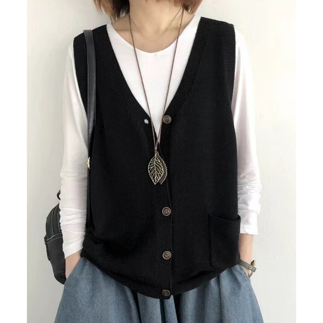 【送料無料・即納】 ニット ベスト Vネック 前開き ノースリーブ 袖なし ジレ チョッキ 重ね着 レイヤード 春秋冬 カジュアル レディース トップス 黒 茶 緑 NS-2512