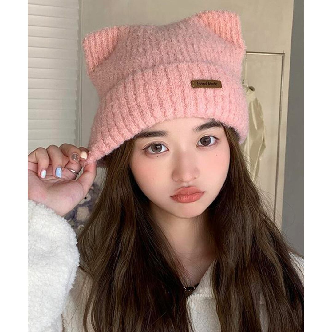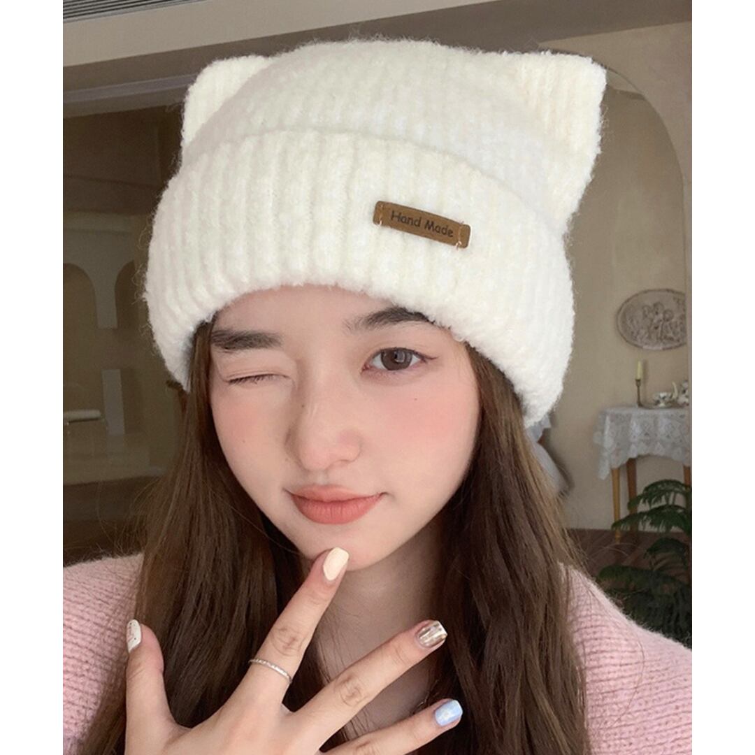 ふわふわとした肌触りが心地よい、猫耳デザインのニット帽。