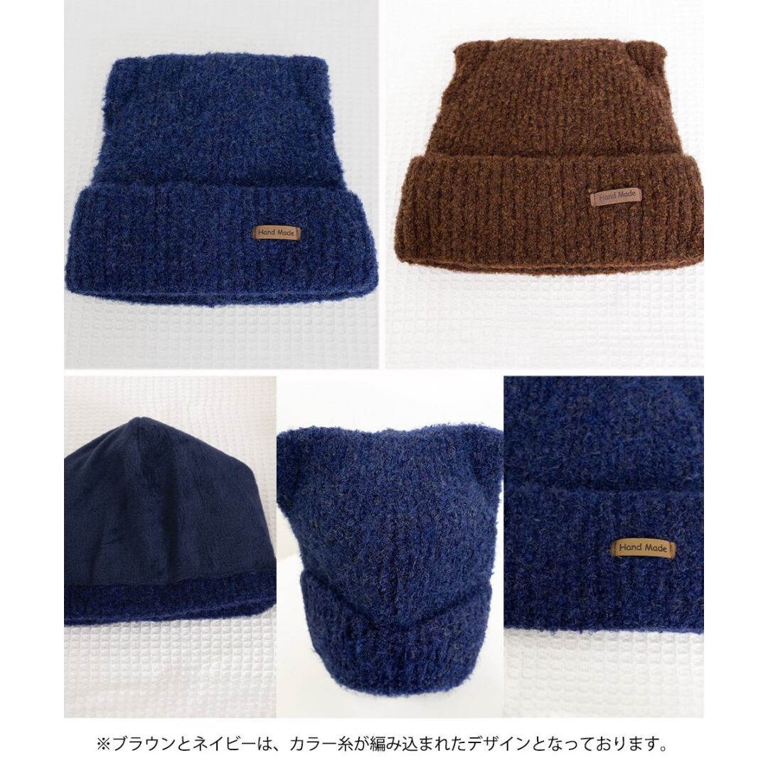 【送料無料・即納】 猫耳 ニット帽 ニットキャップ 帽子 猫耳 ビーニー 裏起毛 毛糸 防風防寒 レディース 黒 白 茶 紺 NS-2513