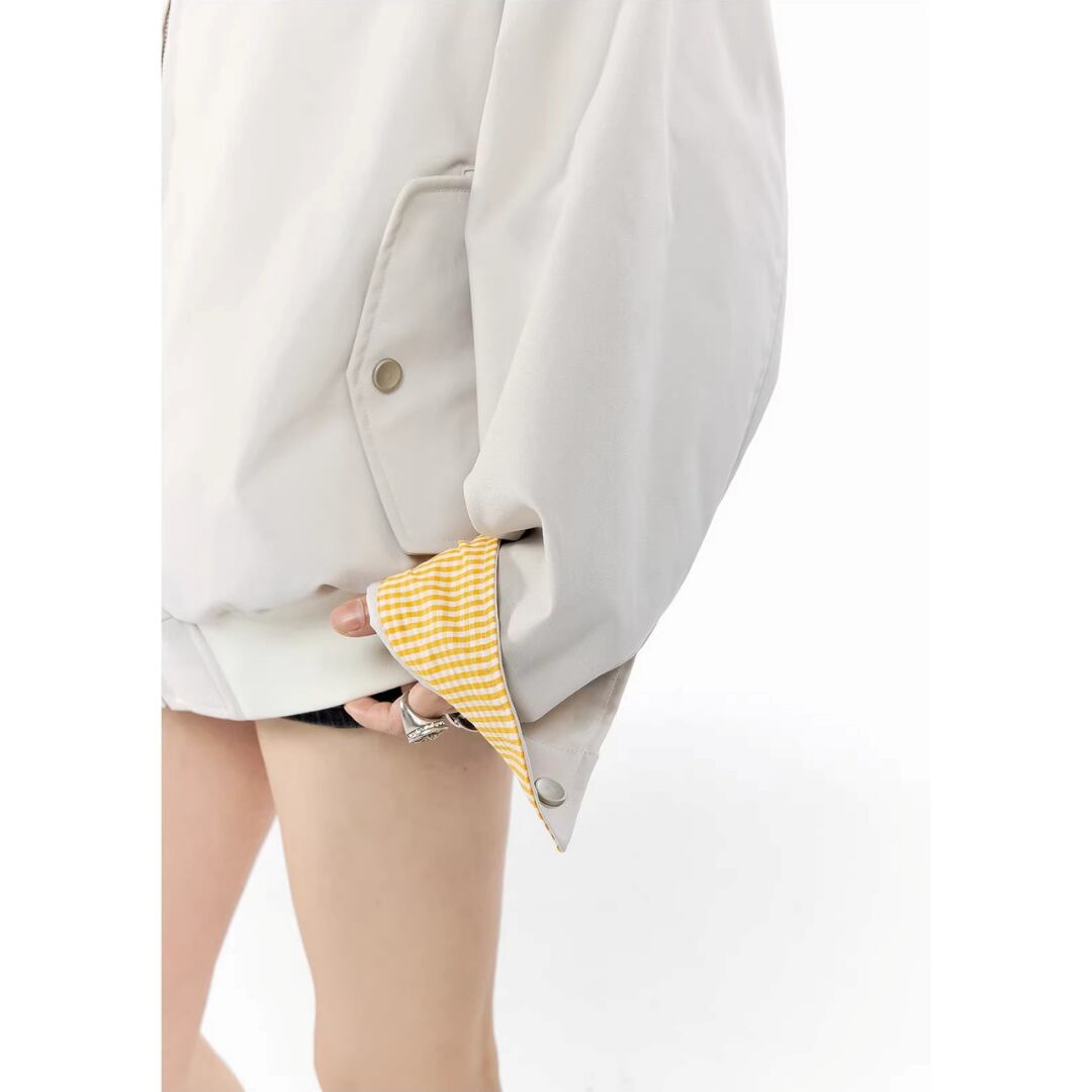 シンプルな無地ボディに、さりげなくのぞくチェック柄がアクセントになったワークテイストのジャケット。