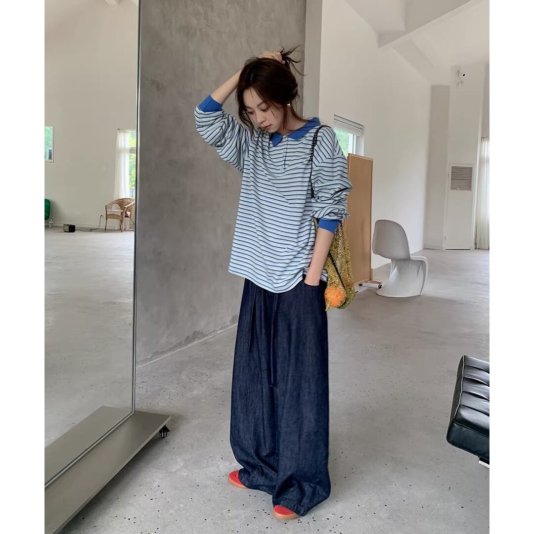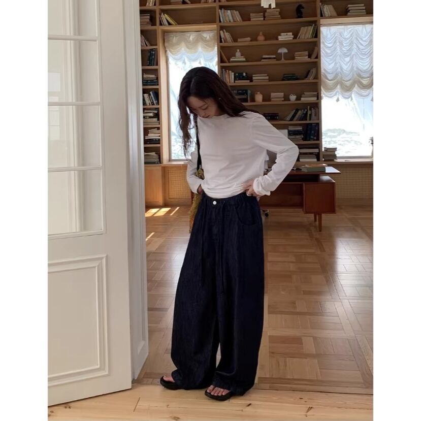 深みのあるインディゴカラーが魅力のワイドデニムパンツ。