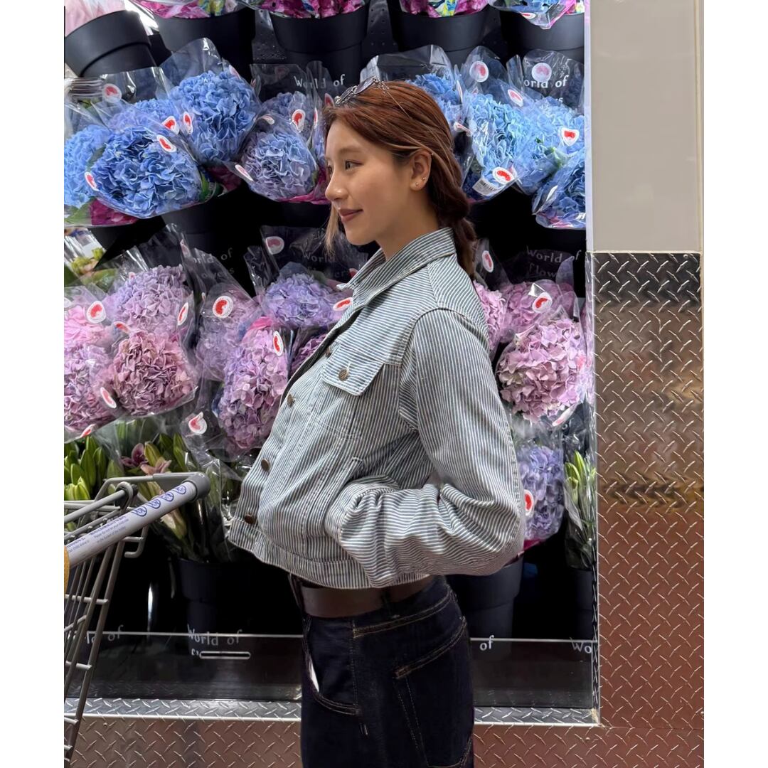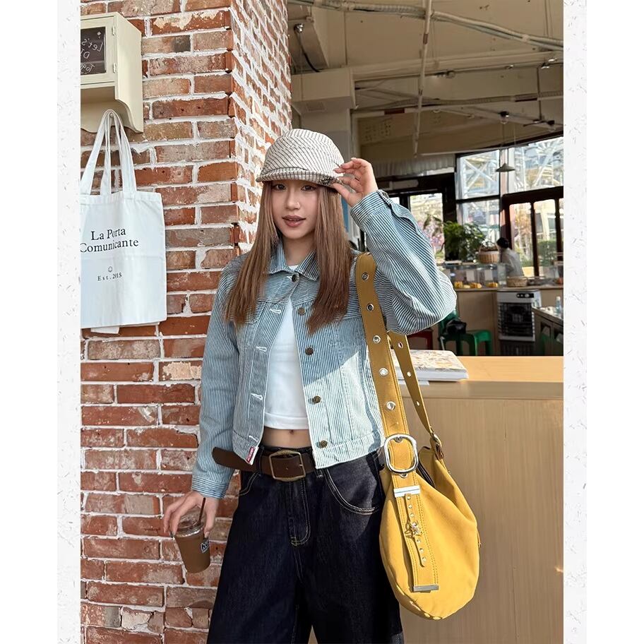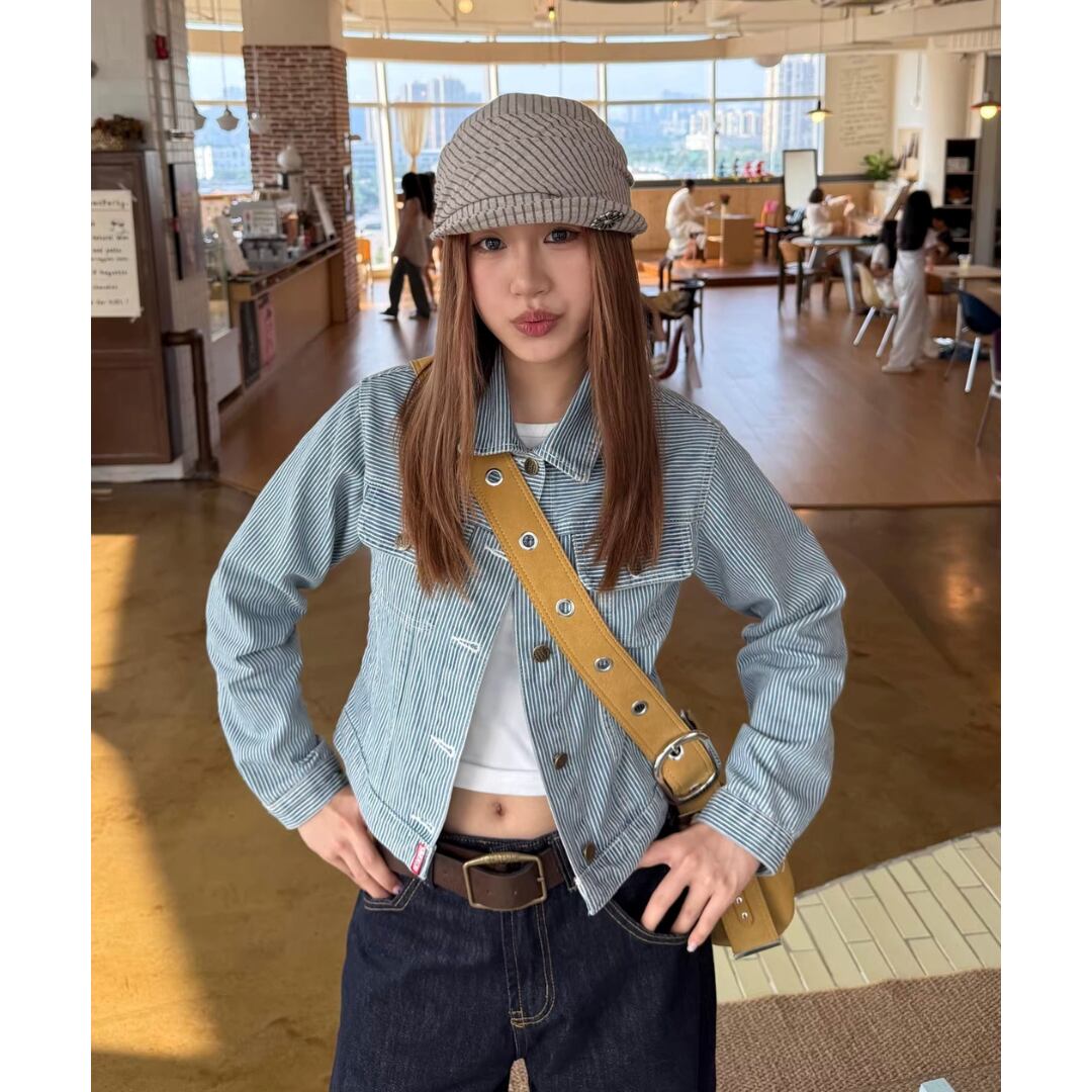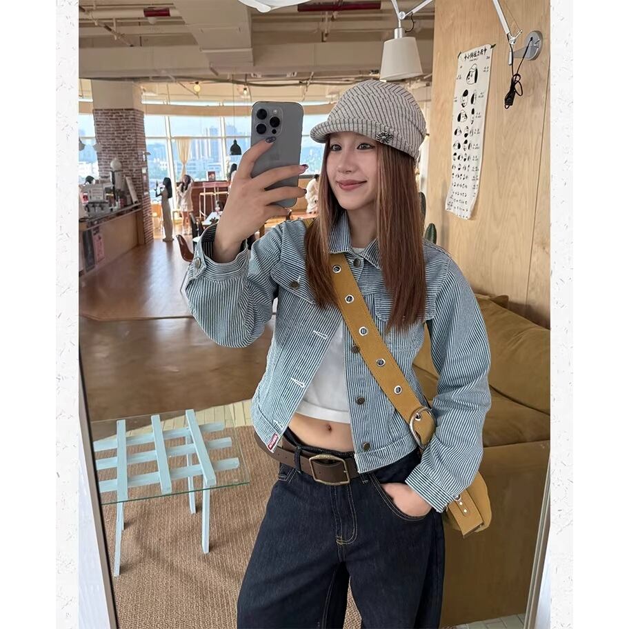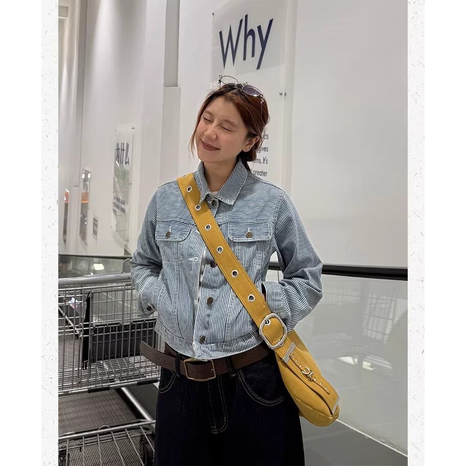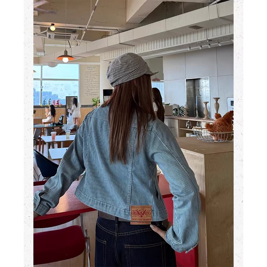 レトロ感のあるストライプデザインが目を引くデニムジャケット。