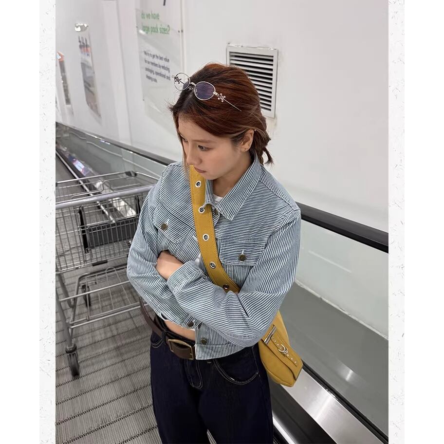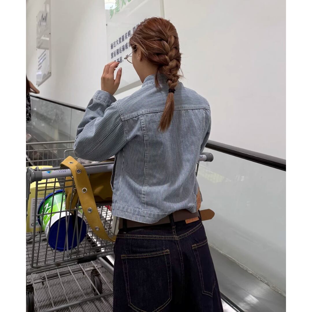 ストライプ デニム ジャケット ブルゾン Gジャン ジージャン 長袖 ショート丈 カジュアル CCYE レディース アウター 青 B-1445 【お取寄せ】