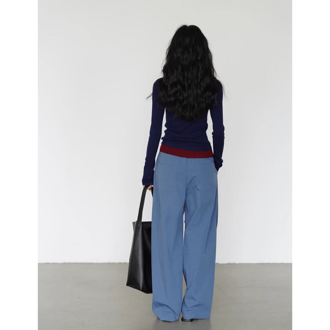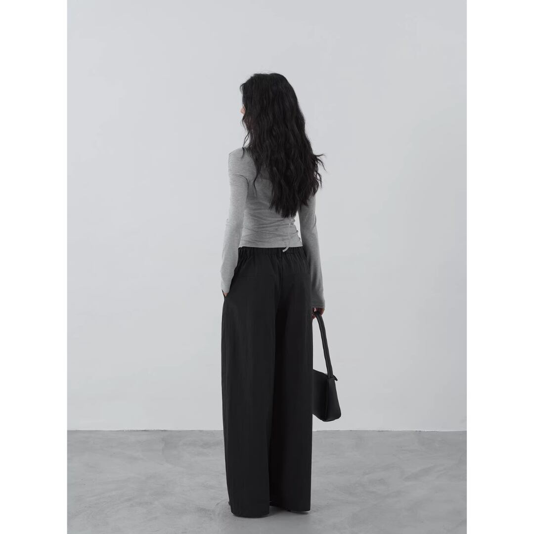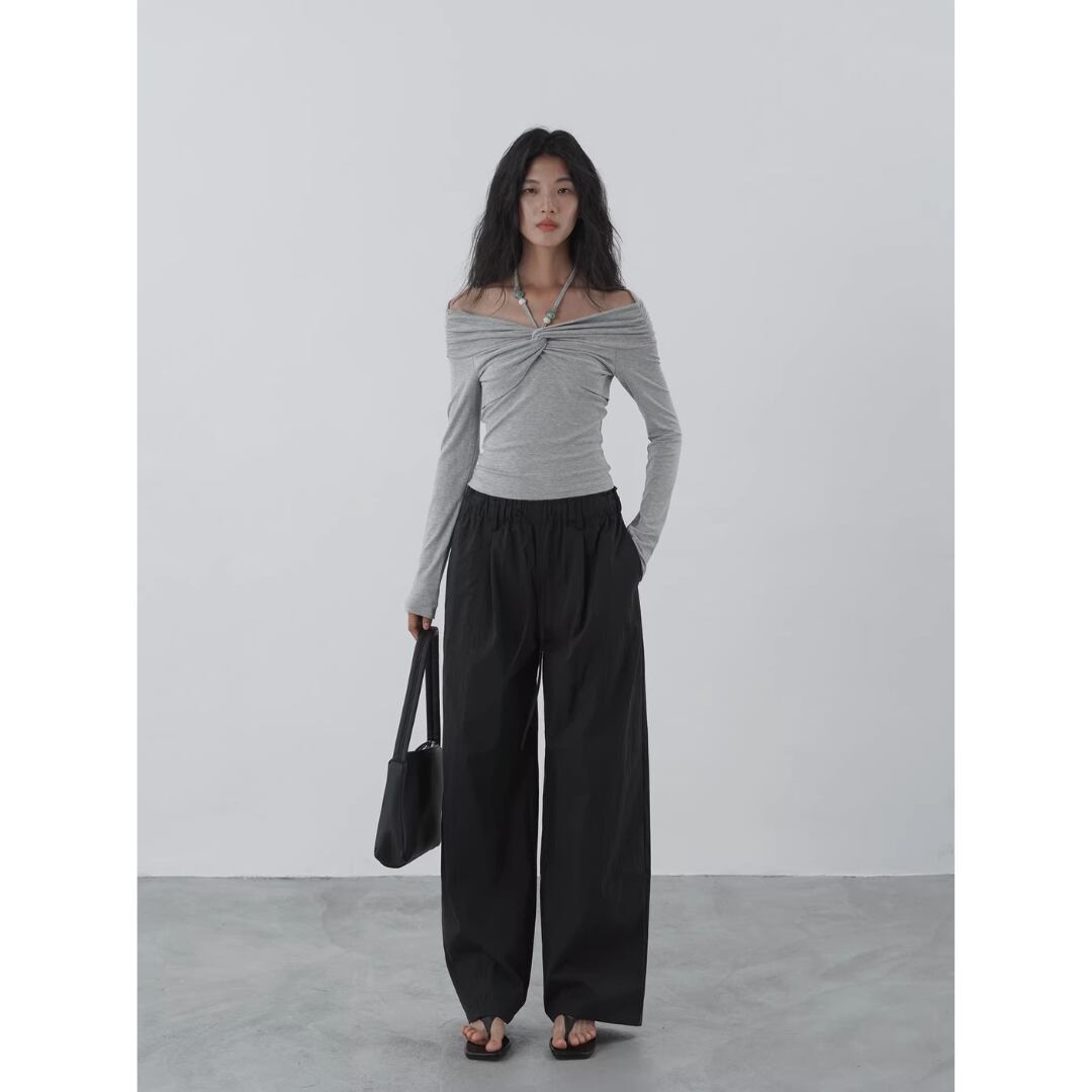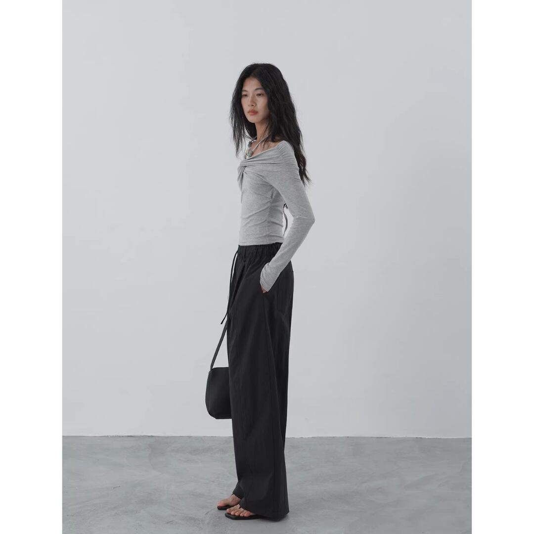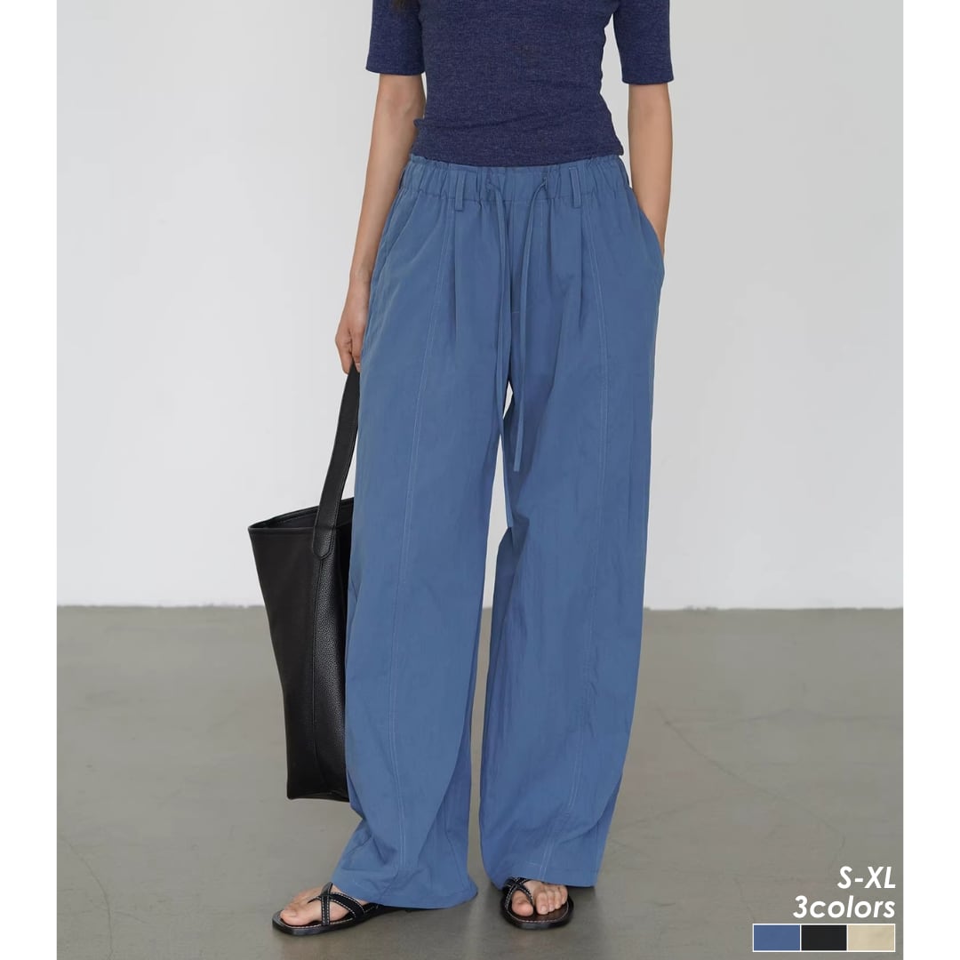 ワイドパンツ イージーパンツ ウエストゴム ドローストリング ポケット ロングパンツ ルーズ カジュアル メンズライク EIGHTHMONTH レディース ボトムス 黒 青 ベージュ B-1458 【お取寄せ】
