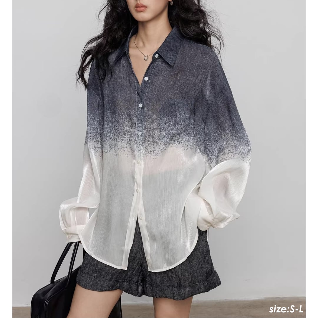 グラデーションカラーが目を引くシアーシャツ。