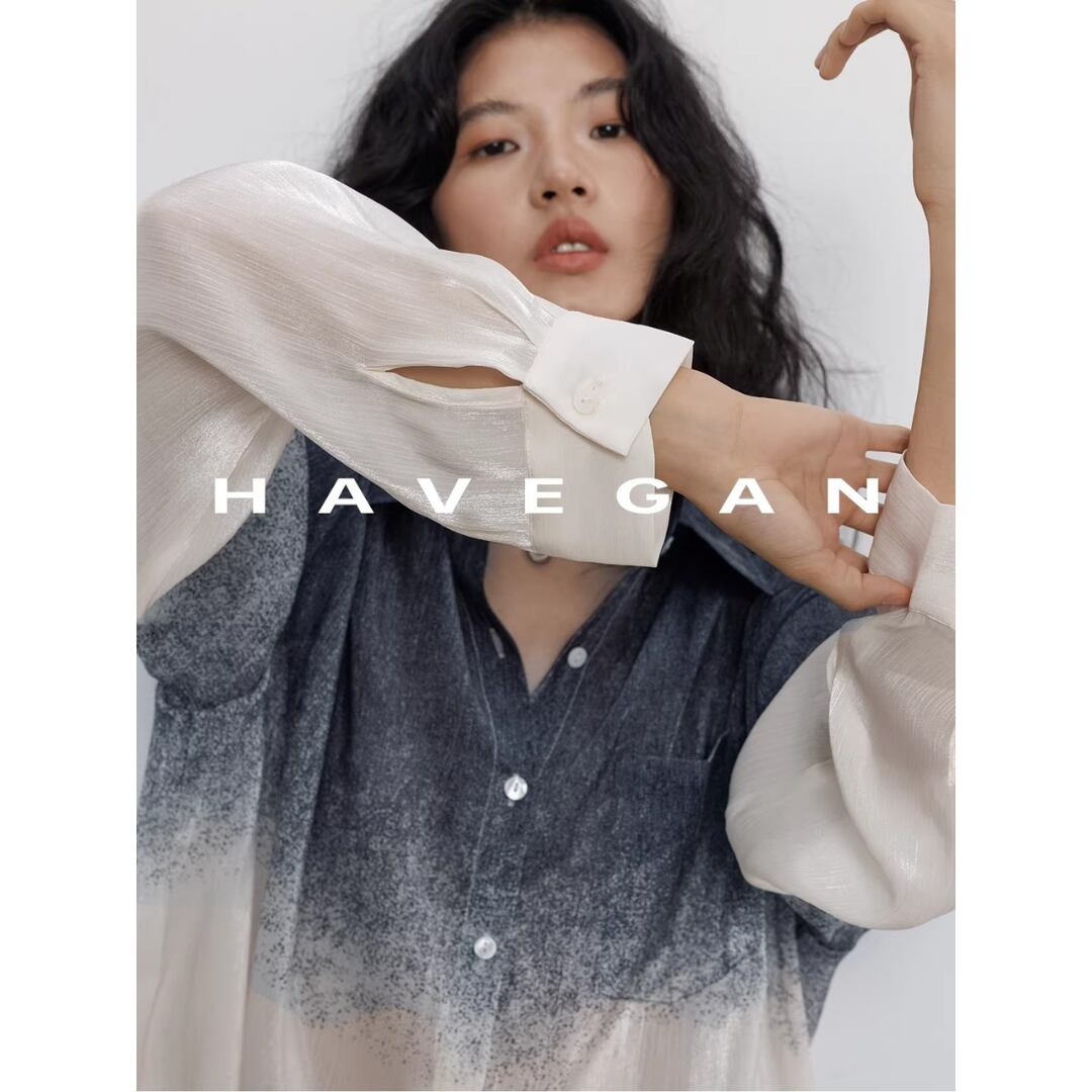 グラデーション シアー シャツ ブラウス 長袖 シースルー 透け感 羽織り 冷房対策 日除け ゆったり カジュアル きれいめ HAVEGAN レディース トップス 白 紺 B-1460 【お取寄せ】