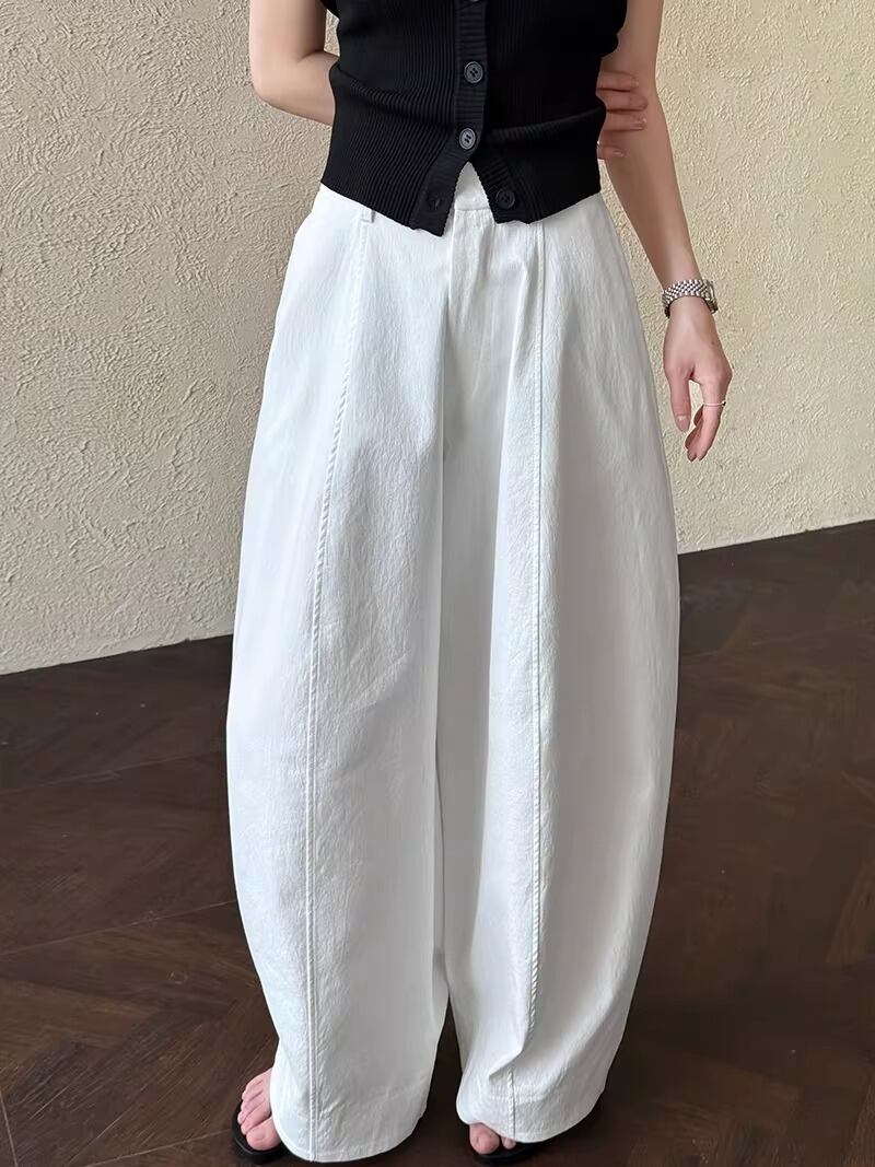 ワイドパンツ バレルパンツ カーブパンツ ハイウエスト ルーズ ゆったり 体型カバー カジュアル レディース ボトムス 白 グレージュ ベージュ B-1463 【お取寄せ】