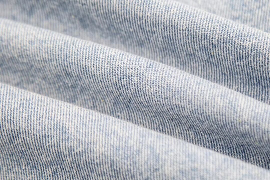 デニム素材で存在感のあるロゴ刺繍Tシャツ。