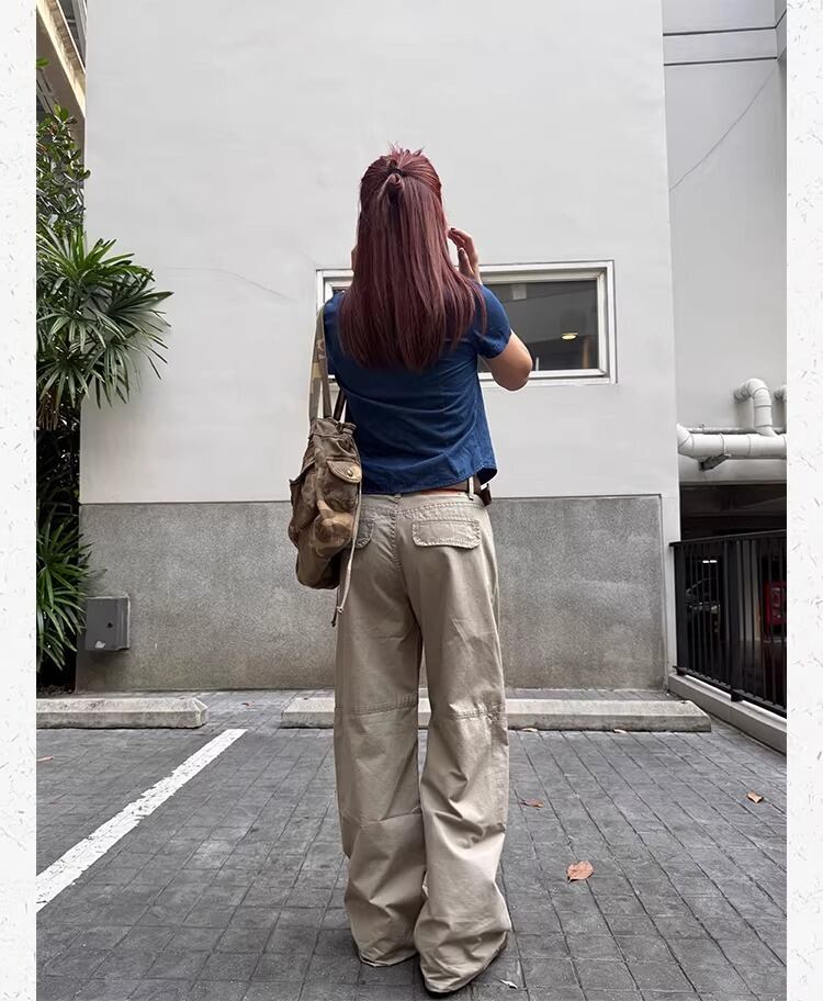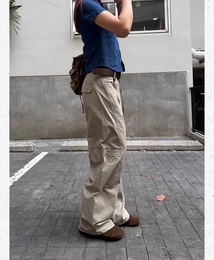 ワイドパンツ カーゴパンツ ワークパンツ マルチポケット ワイドストレートパンツ ルーズ ゆったり アメリカンレトロ カジュアル メンズライク ストリート CCYE レディース ボトムス ベージュ B-1482 【お取寄せ】