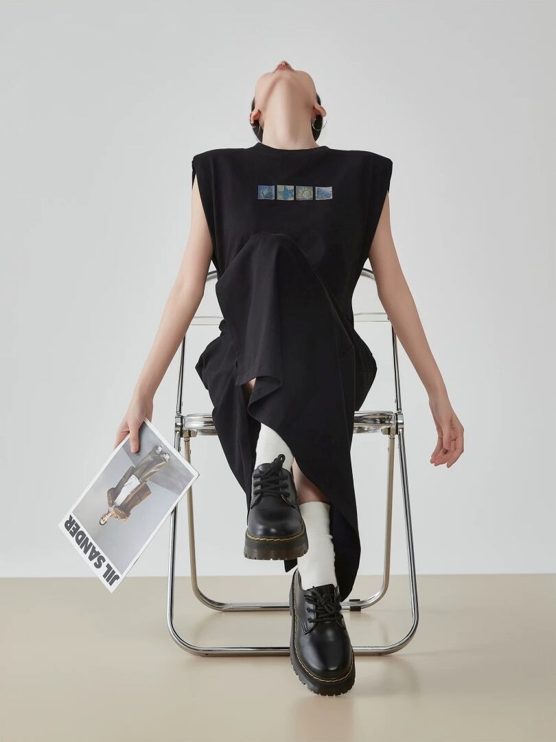 肩まわりを程よくカバーするデザインで、腕周りがすっきりと見えるのも魅力。