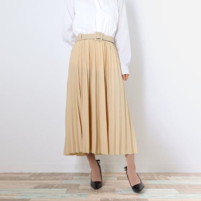 【送料無料・即納】 プリーツスカート ミモレ丈 ロング フレアスカート ベルト付き ウエストゴム Aライン レディース ボトムス 黒 ブラック キャメル グレー NS-0211