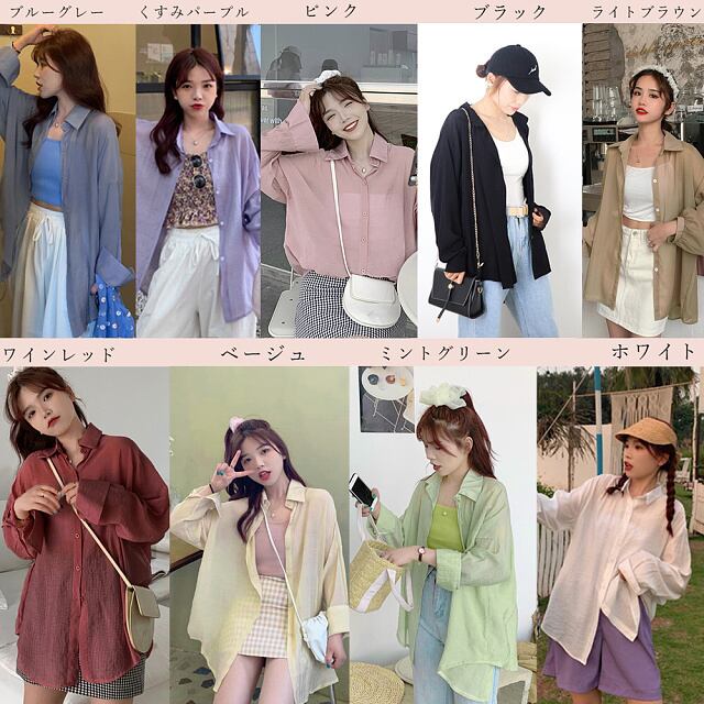 【送料無料・即納】 シアー シャツ ブラウス 長袖 羽織り 透け感 ロング丈 薄手 ゆったり オフィス 通勤 通学 レディース トップス 黒 白 ブラック ホワイト ミントグリーン ピンク NS-0370