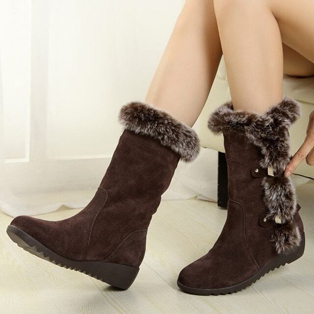 【送料無料・即納】 ファーブーツ ミドル丈ブーツ ローヒール フラットシューズ 防寒 レディース 靴 シューズ 22.5-25cm 黒 ブラック ブラウン NS-0917