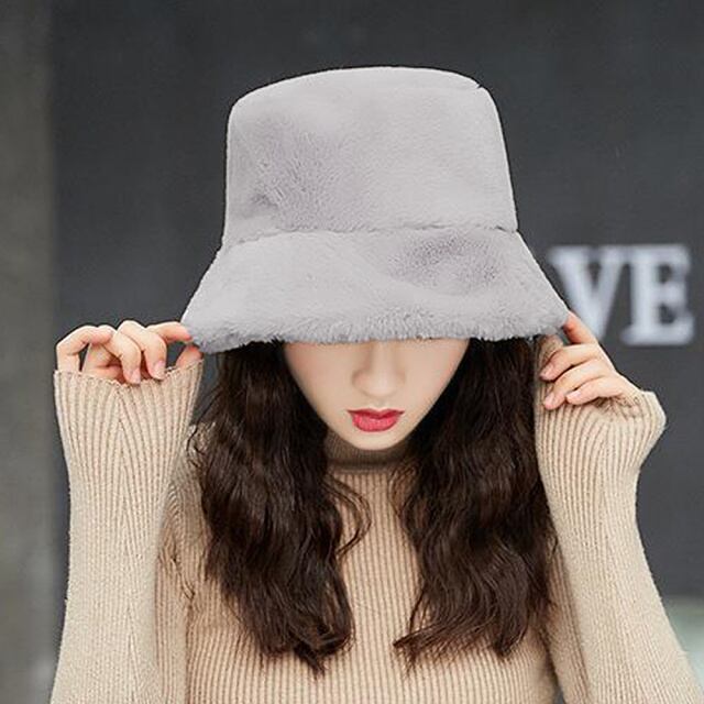 【送料無料・即納】 バケットハット 帽子 エコファー フェイクファー 防寒 暖かい ふわふわ 秋冬 レディース 黒 白 ブラック ホワイト モカ NS-0996
