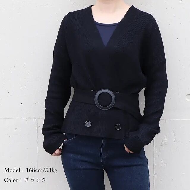 【送料無料・即納】 ニット カーディガン Vネック カシュクール ベルト付き 長袖 ショート丈 羽織 レディース アウター 黒 白 ブラック アイボリー グレー ベージユ NS-1152