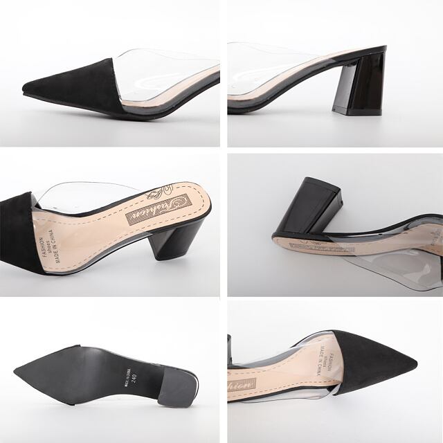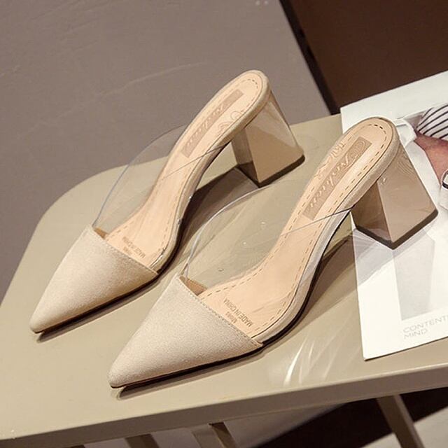 【送料無料・即納】 ミュール サンダル パンプス チャンキーヒール ポインテッドトゥ クリア 太ヒール レディース 靴 シューズ 22.5-24.5cm 黒 ブラック ベージュ NS-1279