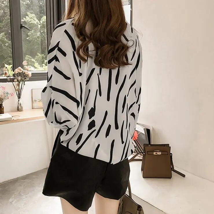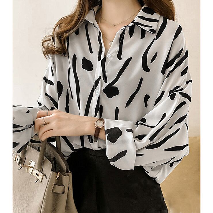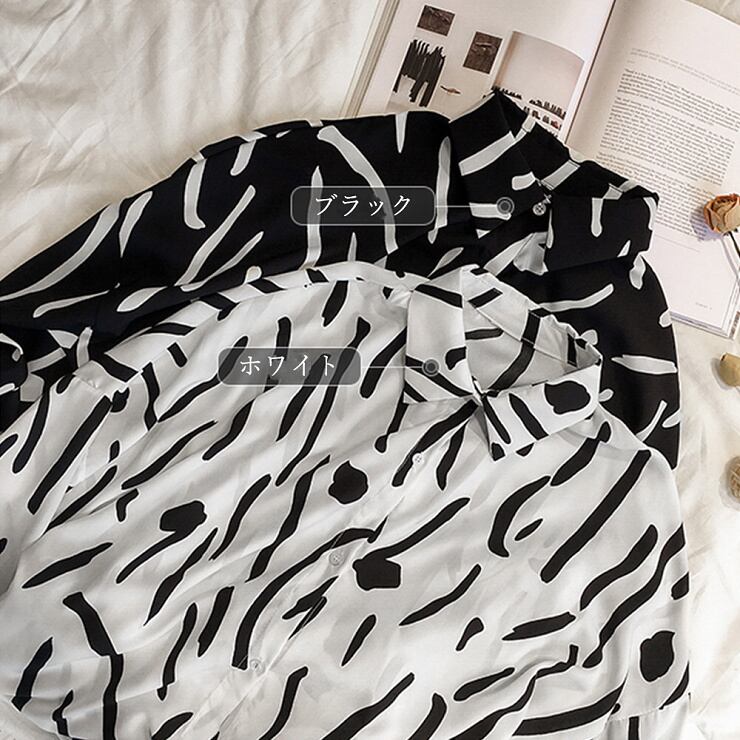 【送料無料・即納】 ブラウス 柄シャツ 長袖 きれいめ とろみブラウス 薄手 羽織り ゆったり 上品 オフィス レディース トップス 黒 白 NS-1301