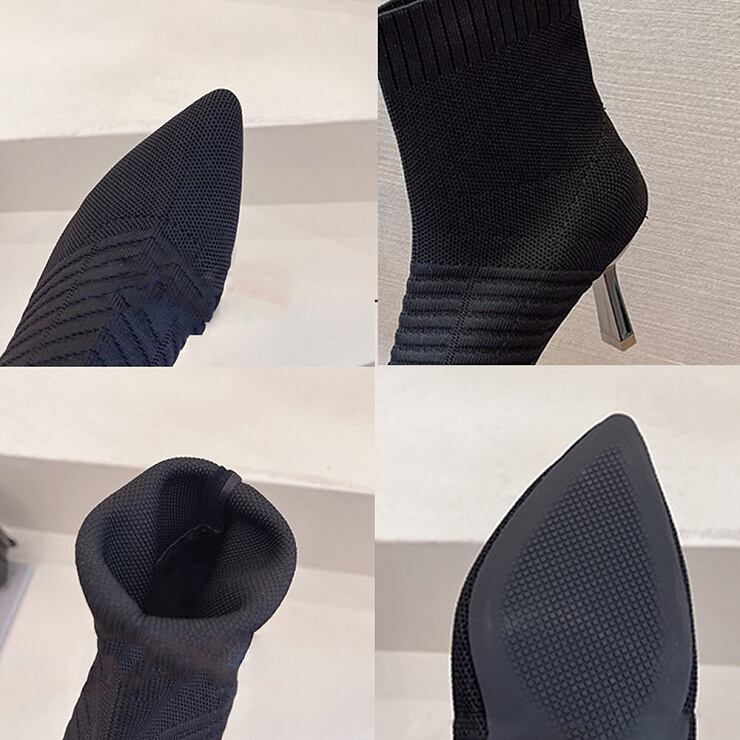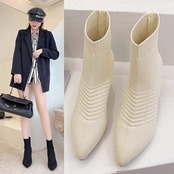 【送料無料・即納】 ソックスブーツ ポインテッドトゥ ハイヒール ピンヒール ニットブーツ ショートブーツ ミドルブーツ 美脚 レディース 靴 シューズ 22.5-24.5cm 黒 ベージュ NS-1901