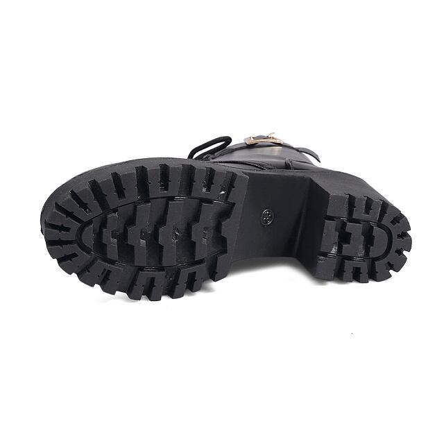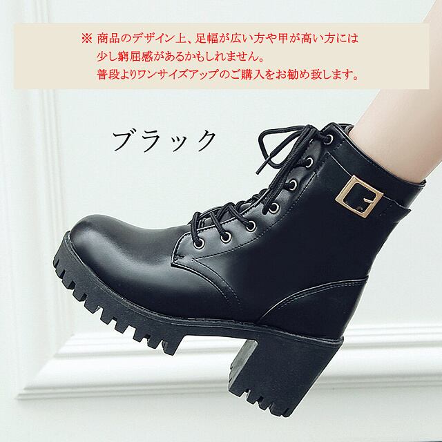 【送料無料・即納】 ショートブーツ レースアップ 編み上げ 厚底 太ヒール ワークブーツ レディース 靴 シューズ 22.5-25cm 黒 NS-1911