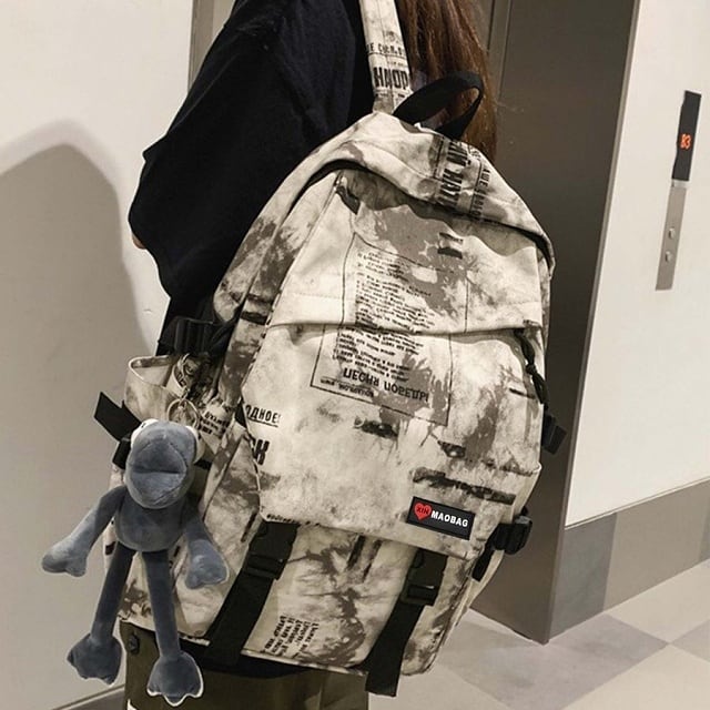 【送料無料・即納】 リュックサック 大容量 チャーム付き プリント タイダイ柄 デイパック バックパック カジュアル 通勤 通学 旅行 アウトドア 男女兼用 ユニセックス レディース メンズ 黒 白 NS-1967