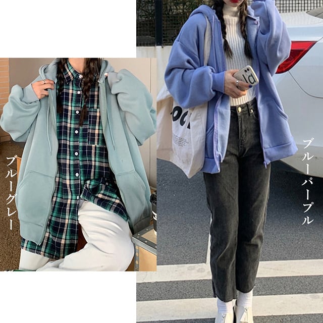 【送料無料・即納】 ジップ パーカー ジップアップ フーディー 裏起毛 長袖 スウェット ファスナー フード付き 厚手 ゆったり レディース トップス 黒 紺 青 紫 NS-2050