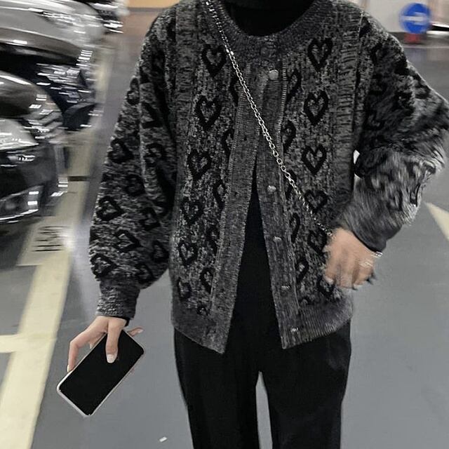 【送料無料・即納】 ニット カーディガン 長袖 ハート柄 クルーネック ドロップショルダー 中厚手 羽織 ゆったり レディース アウター NS-2167