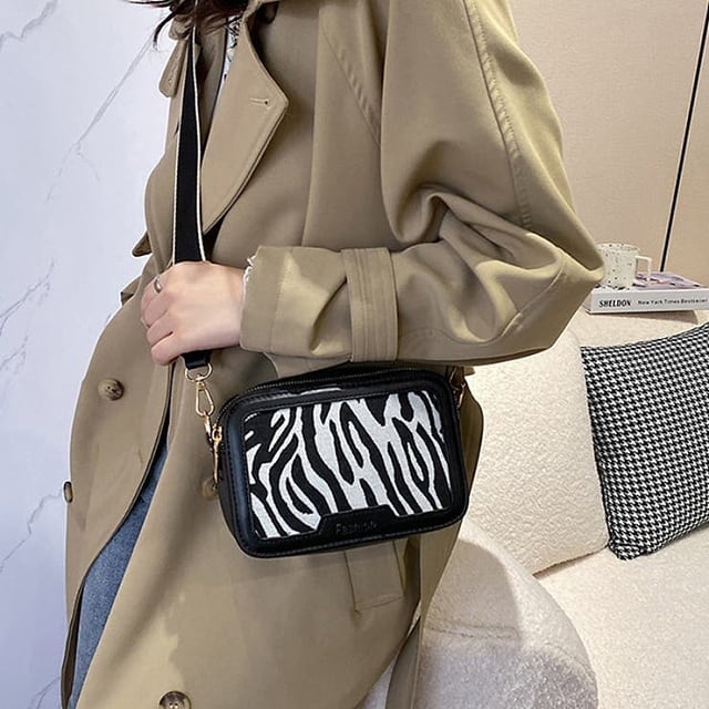 【送料無料・即納】 ショルダーバッグ アニマル柄 ヒョウ柄 ゼブラ柄 千鳥格子 レオパード スクエア ミニバッグ 小さめ ポーチ レトロ 肩掛け 斜め掛け かばん 鞄 レディース 黒 茶 NS-2214