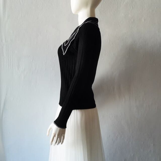 【送料無料・即納】 リブニット トップス 襟付き 長袖 Vネック バイカラー プルオーバー セーター ニットソー 秋冬 レディース 黒 白 NS-2233