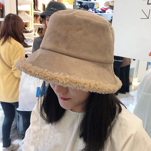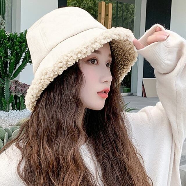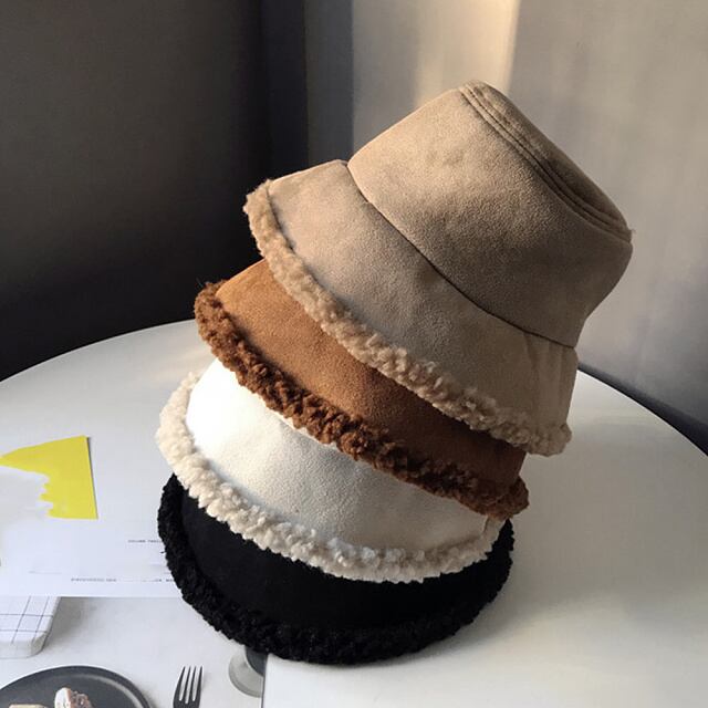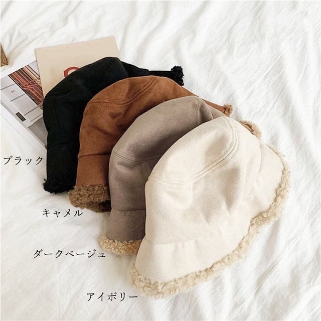 【送料無料・即納】 バケットハット 帽子 ボアハット フェイクムートン 防寒 暖かい モコモコ 厚手 秋冬 レディース 黒 白 茶 ホワイト NS-2251