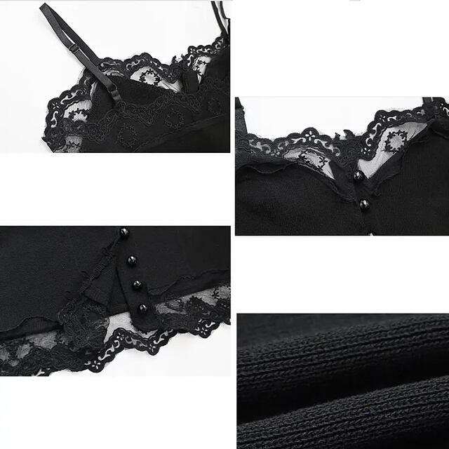 【送料無料・即納】 ショート丈 レース キャミソール ボタン ストラップサイズ調整可 重ね着 レイヤード 透け感 レディース トップス インナー 黒 白 NS-2312