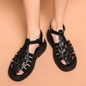 【送料無料・即納】 グルカサンダル 厚底ソール ボリューム 編み込み アンクルストラップ ラウンドトゥ フラットサンダル ローヒール ぺたんこ 美脚 レディース 靴 シューズ 22.5-24.5cm 黒 白 NS-2358