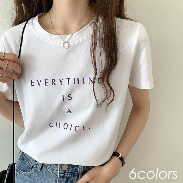 Tシャツ 半袖 ロゴ クルーネック ラウンドネック 英字 シンプル カットソー レディース トップス 大きいサイズ 白 黒 青 紺 B-0001【お取寄せ】