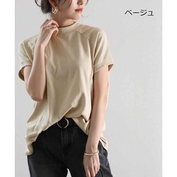 Tシャツ 半袖 ラグランスリーブ クルーネック モックネック ボーダー シンプル カットソー ゆったり ゆるTシャツ レディース トップス 白 黒 紺 茶 黄 B-0017【お取寄せ】